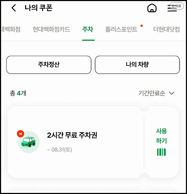 2. 더현대 & 현대백화점 2시간 무료주차 쿠폰 사용법