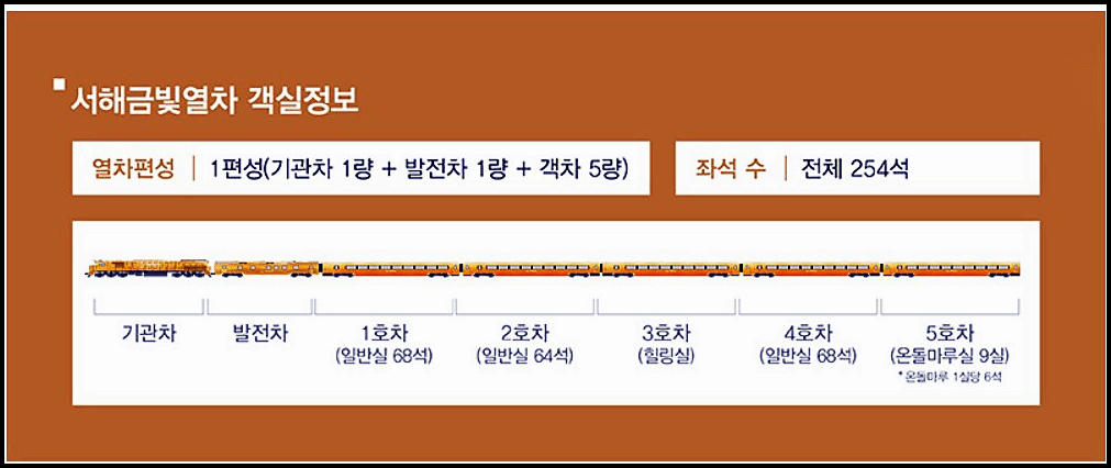 서해열차는 총 254석으로 구성되어 있으며, 각 차마다 독특한 테마와 시설을 갖추고 있어 다양한 여행 경험을 제공합니다. 각 객실의 좌석 수와 편의시설을 꼼꼼히 확인해보세요.