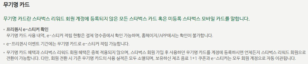 Tip: 회원가입 없이 무기명으로 e카드를 사용하는 경우, 스타벅스 리워드 혜택을 받을 수 없으니 주의하세요. 회원가입 후 사용하면 다양한 혜택을 누릴 수 있습니다!