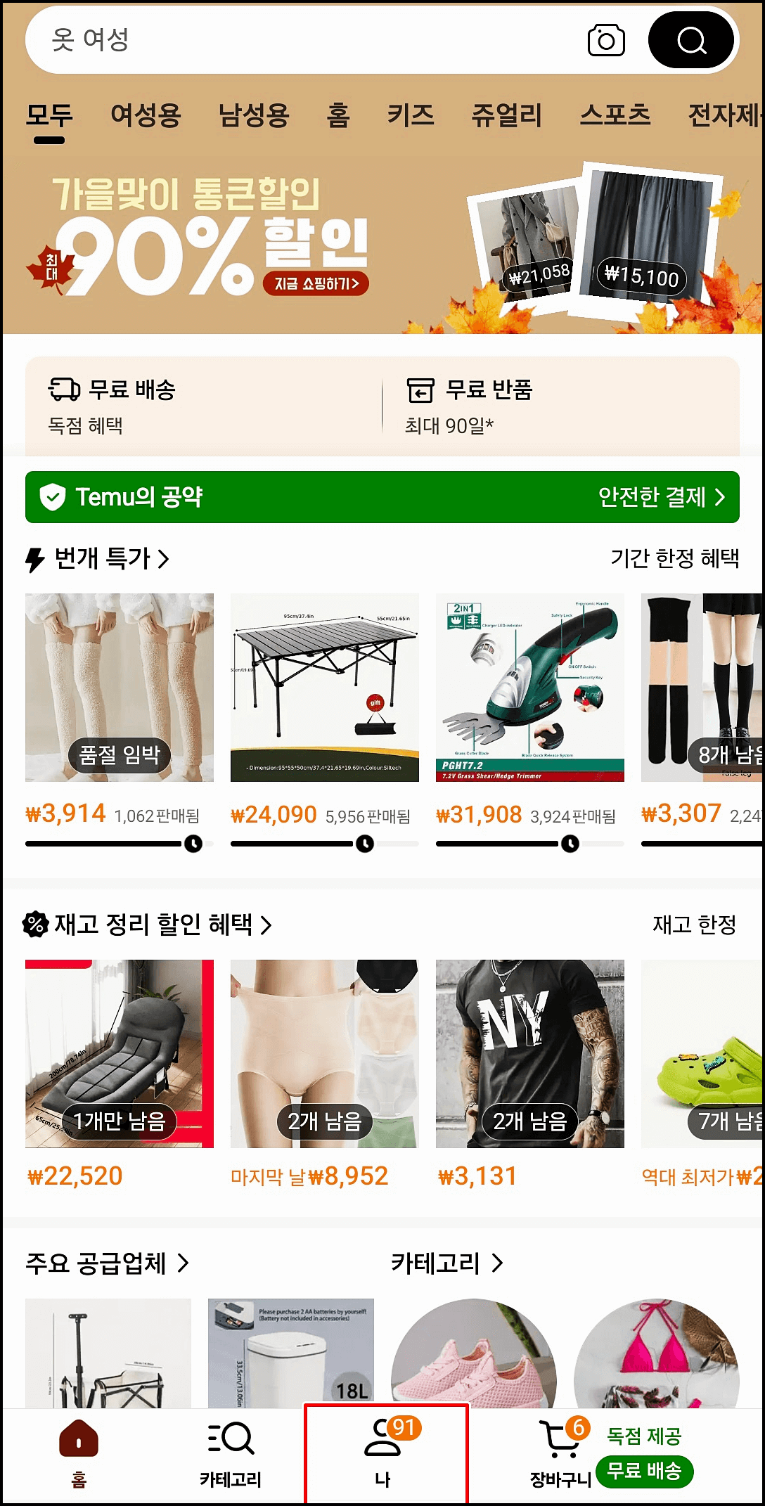 1. 테무 앱 실행 후 '나' 선택